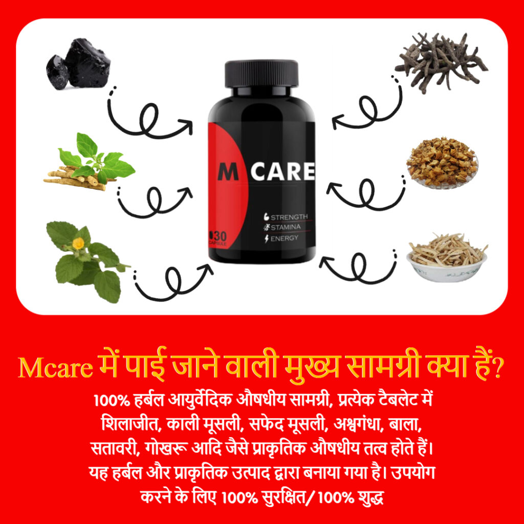 MCARE कैप्सूल रक्त प्रवाह को उत्तेजित करके और पुरुष हार्मोन के स्तर को बढ़ावा देकर प्राकृतिक तरीके से लिंग में कठोरता प्राप्त करने में आपकी सहायता करें